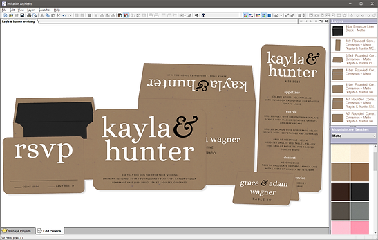Mountaincow's Invitation Architect software allows customers​ to create on-screen previews and proofs of layered invitations and multi-piece invitation suites using different paper colors and patterns.